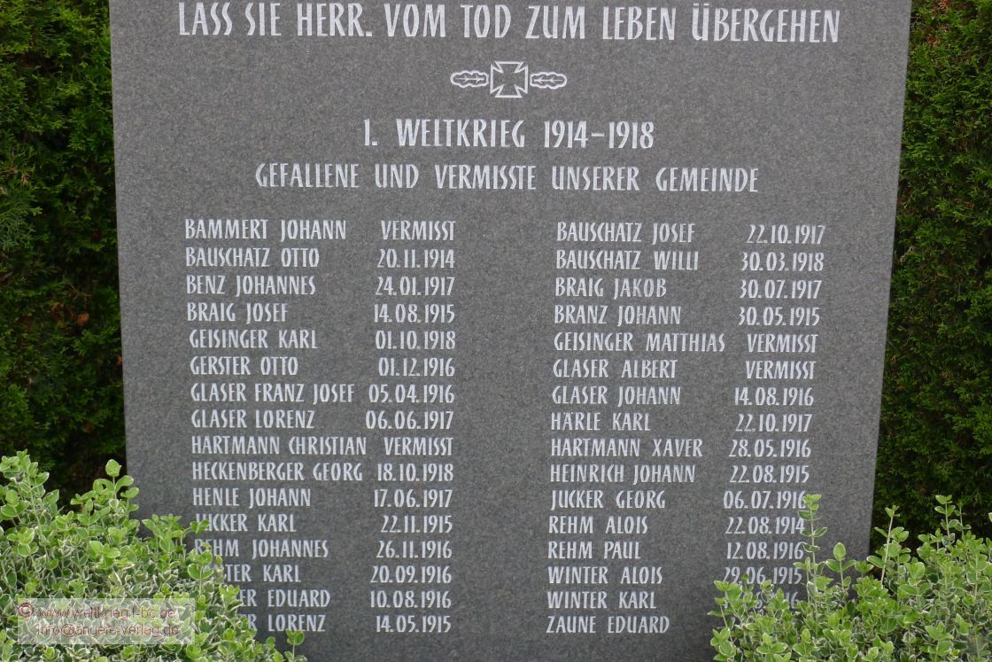 Gemeinde Ortsteil Wohnplatz Name Vorname Geburtsdatum Ausgerueckt Status Datum (Gefallen/ Vermisst/ Heimgekehrt) Bemerkung Sterbeort Kriegsgraeberstaette Grablage Dienstgrad Einheit Krieger- denk- mal Ehren- tafel Ehren- chro- nik